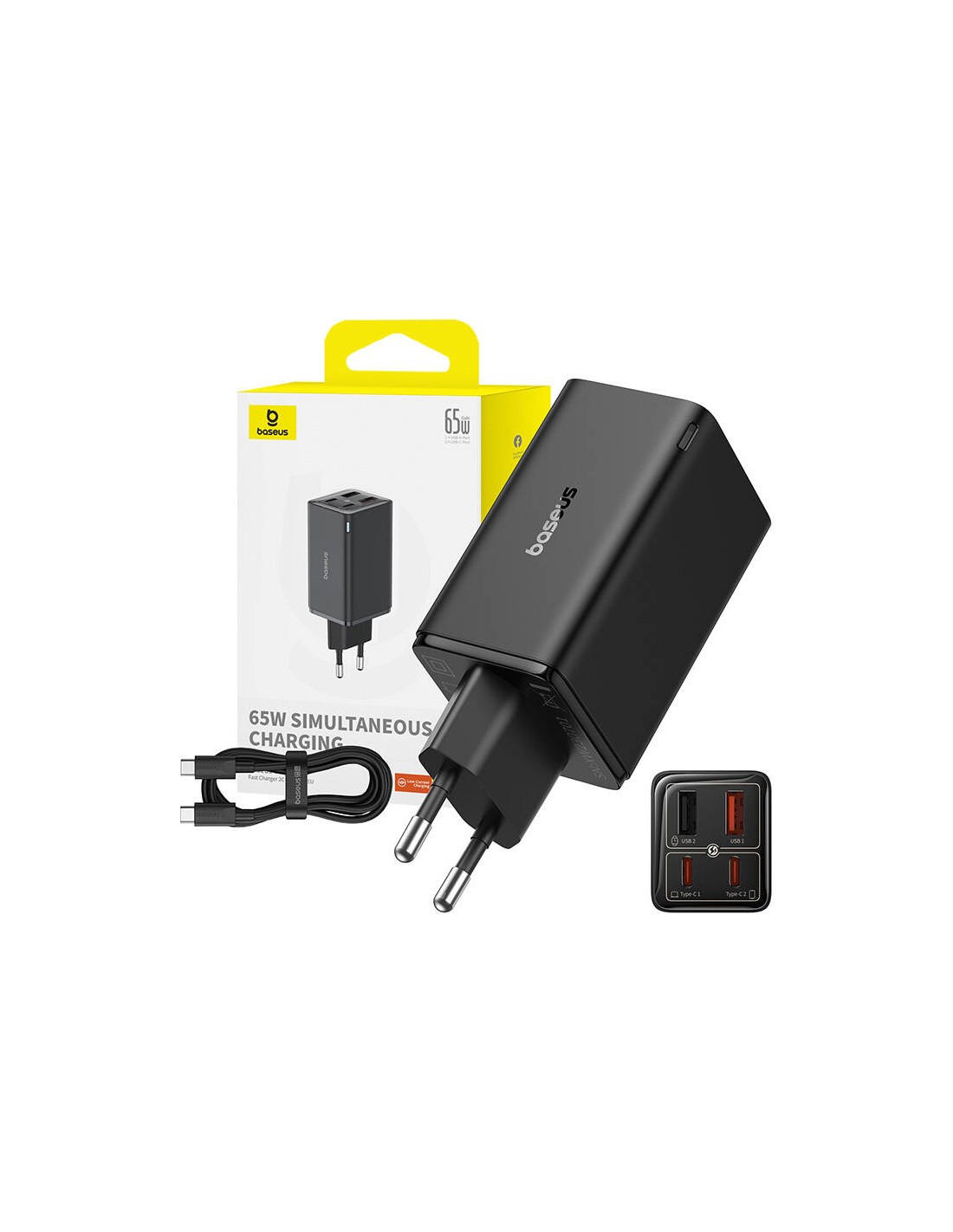 Зарядно устройство Baseus GAN6 Pro, 2xUSB-C + 2xUSB, 65W P10162701113-00 - черно _VI