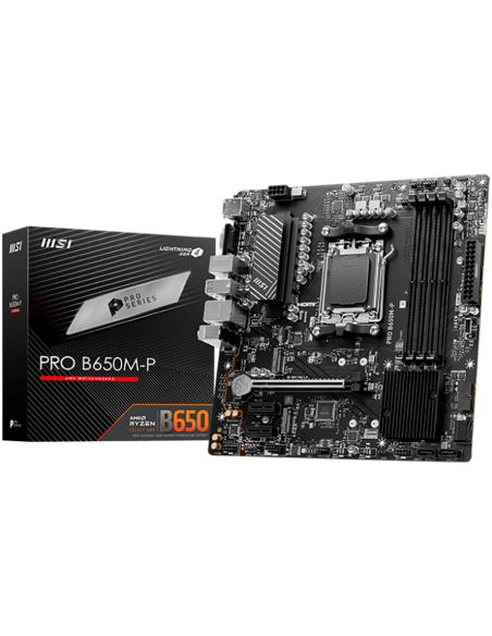 MSI PRO B650M-P,ATX, Socket AM5,AMD B650, 4xDDR5, Dual Channel DDR5 up to 7200+(OC)MHz,1x PCIe 4.0/3.0 x16 slot,2x M.2 slots,2x USB 3.2 Gen 2 (1x Type-C),2x USB 3.2 Gen 1,4x USB 2.0,1x HDMI,1x DP,2.5G LAN,7.1 Audio,3y warranty_AS