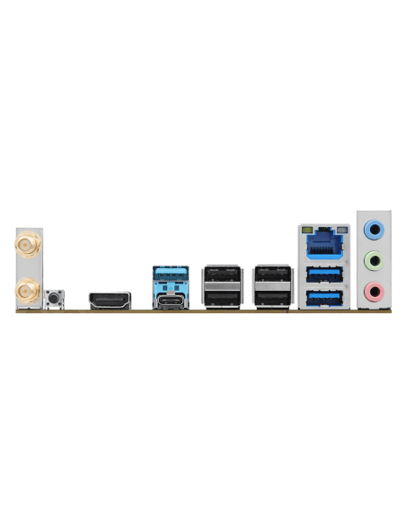 2 x Antenna Ports;1 x HDMI Port;3 x USB 3.2 Gen1 Type-A Ports;1 x USB 3.2 Gen1 Type-C Port;4 x USB 2.0 Ports;1 x RJ-45 LAN Port;1 x BIOS Flashback Button;HD Audio Jacks: Line in / Front Speaker / Microphone