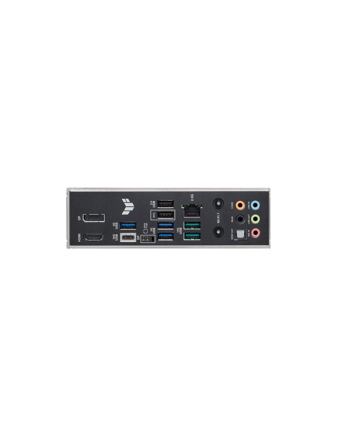 1 x USB 20Gbps port (1 x USB Type-C® with DP Alt mode);2 x USB 10Gbps ports (2 x USB Type-A);3 x USB 5Gbps ports (3 x Type-A);2 x USB 2.0 ports (2 x Type-A);1 x DisplayPort;1 x HDMI™ port;1 x Wi-Fi module;1 x Realtek 2.5Gb Ethernet port;5 x Audio jacks;1