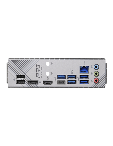- 2 x Antenna Mounting Points; - 1 x HDMI Port; - 1 x DisplayPort 1.4; - 1 x USB 3.2 Gen2 Type-A Port (10 Gb/s); - 1 x USB 3.2 Gen2 Type-C Port (10 Gb/s); - 4 x USB 3.2 Gen1 Ports; - 2 x USB 2.0 Ports; - 1 x RJ-45 LAN Port; - HD Audio Jacks: Line in / Fro
