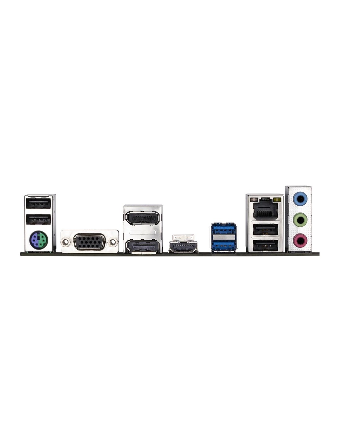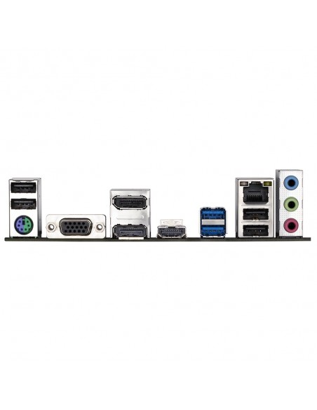 1 x PS/2 keyboard/mouse port; 1 x D-Sub port; 2 x DisplayPorts; 1 x HDMI port; 2 x USB 3.2 Gen 1 ports; 4 x USB 2.0/1.1 ports; 1 x RJ-45 port; 3 x audio jacks