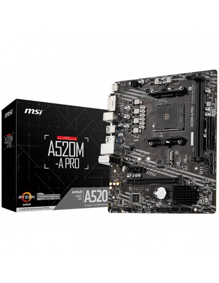 MSI Main Board Desktop A520M-A PRO (A520, AM4, 2xDDR4, 1x PCI-E 3.0 x16 slot,1x M.2 slot,4x USB 3.2 Gen1,2x USB 2.0,1x HDMI,1x DVI-D,Gigabit LAN,7.1 HD Audio, mATX, Retail)_AS