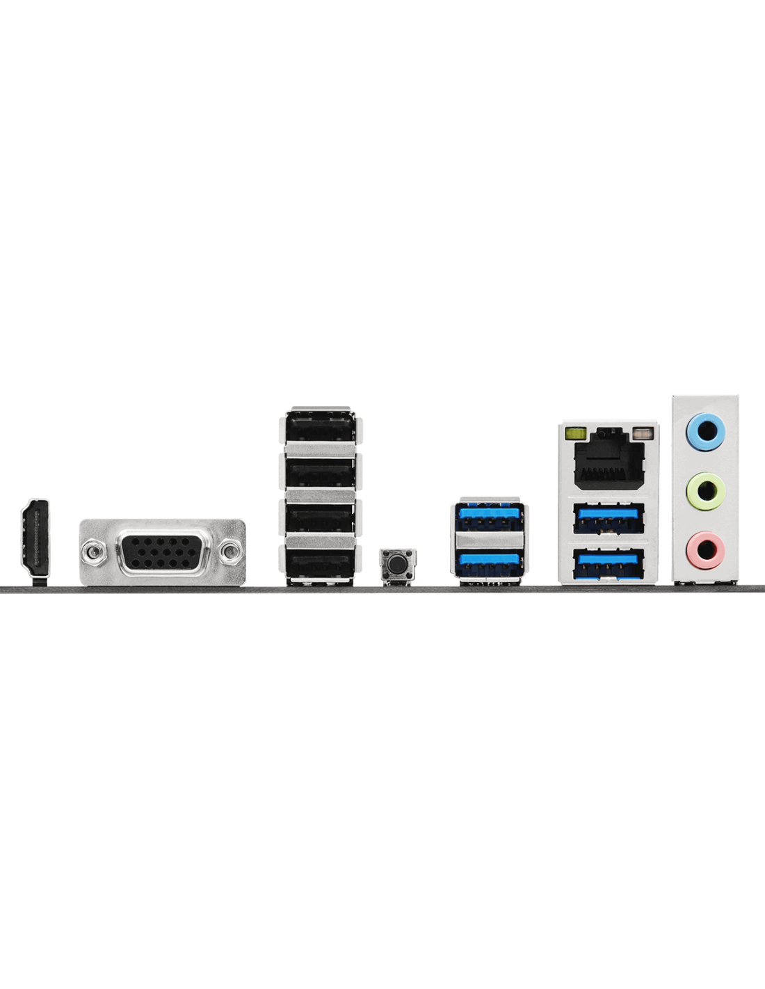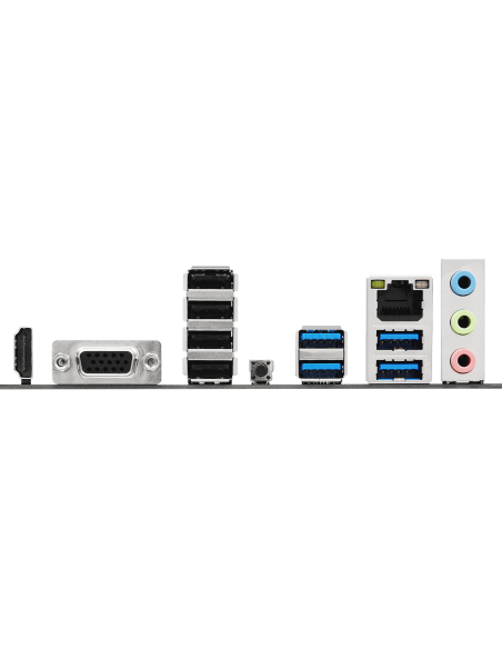 2 x Antenna Mounting Points;1 x D-Sub Port;1 x HDMI Port;4 x USB 3.2 Gen1 Type-A Ports;4 x USB 2.0 Ports;1 x RJ-45 LAN Port;1 x BIOS Flashback Button;HD Audio Jacks: Line in / Front Speaker / Microphone