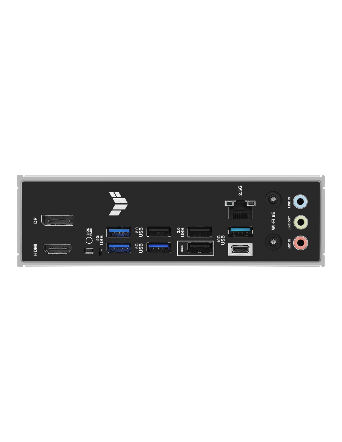 2 x USB 10Gbps ports (1 x Type-A + 1 x USB Type-C®);3 x USB 5Gbps ports (3 x Type-A);3 x USB 2.0 ports (3 x Type-A);1 x DisplayPort;1 x HDMI™ port;1 x Wi-Fi module;1 x Realtek 2.5Gb Ethernet port;3 x Audio jacks;1 x BIOS FlashBack™ button