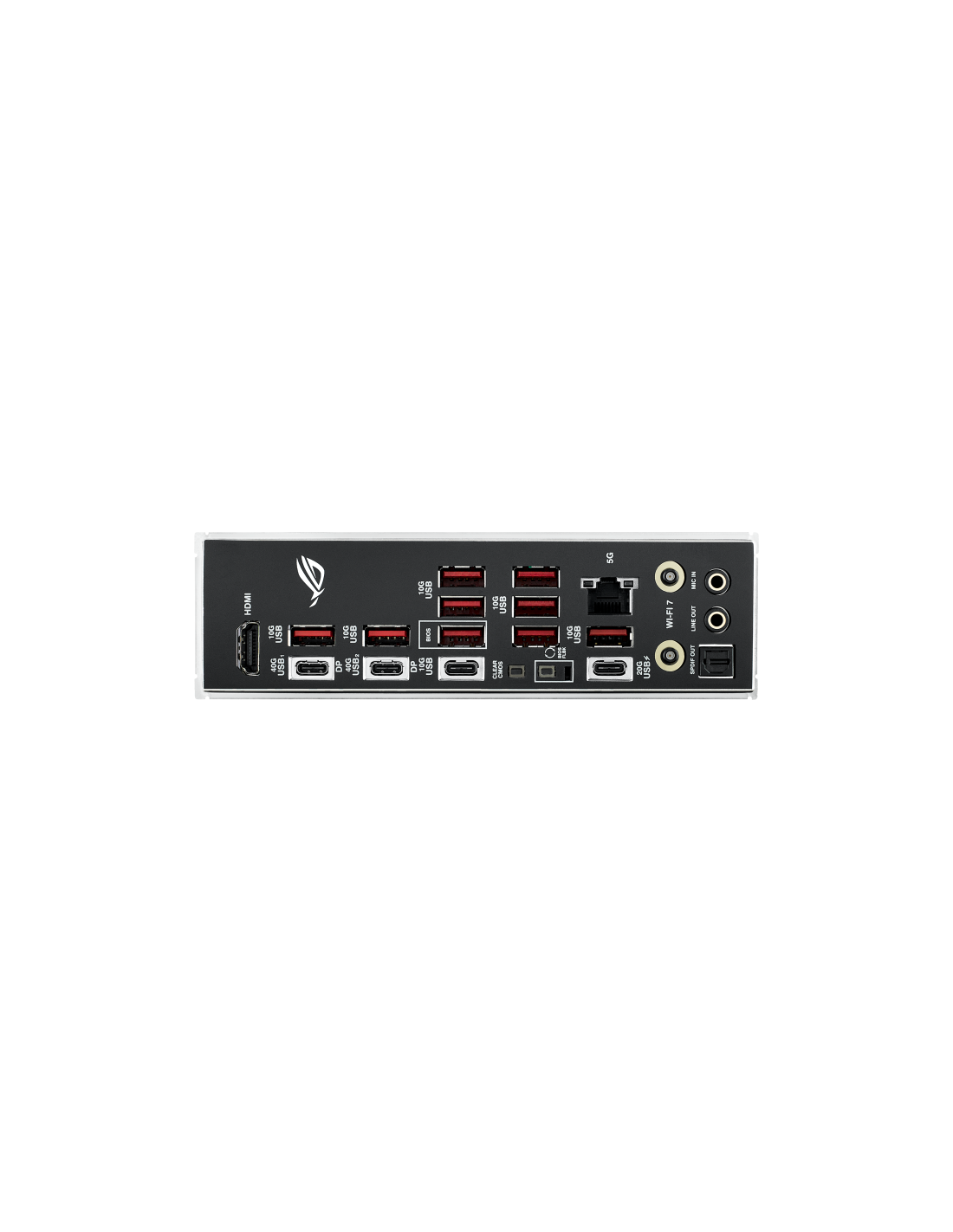 2 x USB4® (40Gbps) ports (2 x USB Type-C®);1 x USB 20Gbps port (1 x USB Type-C® with up to 30W PD Fast-charge);10 x USB 10Gbps ports (9 x Type-A + 1 x USB Type-C®);1 x HDMI™ port;1 x Wi-Fi Module;1 x Realtek 5Gb Ethernet;2 x Gold-plated audio jacks ;1 x O
