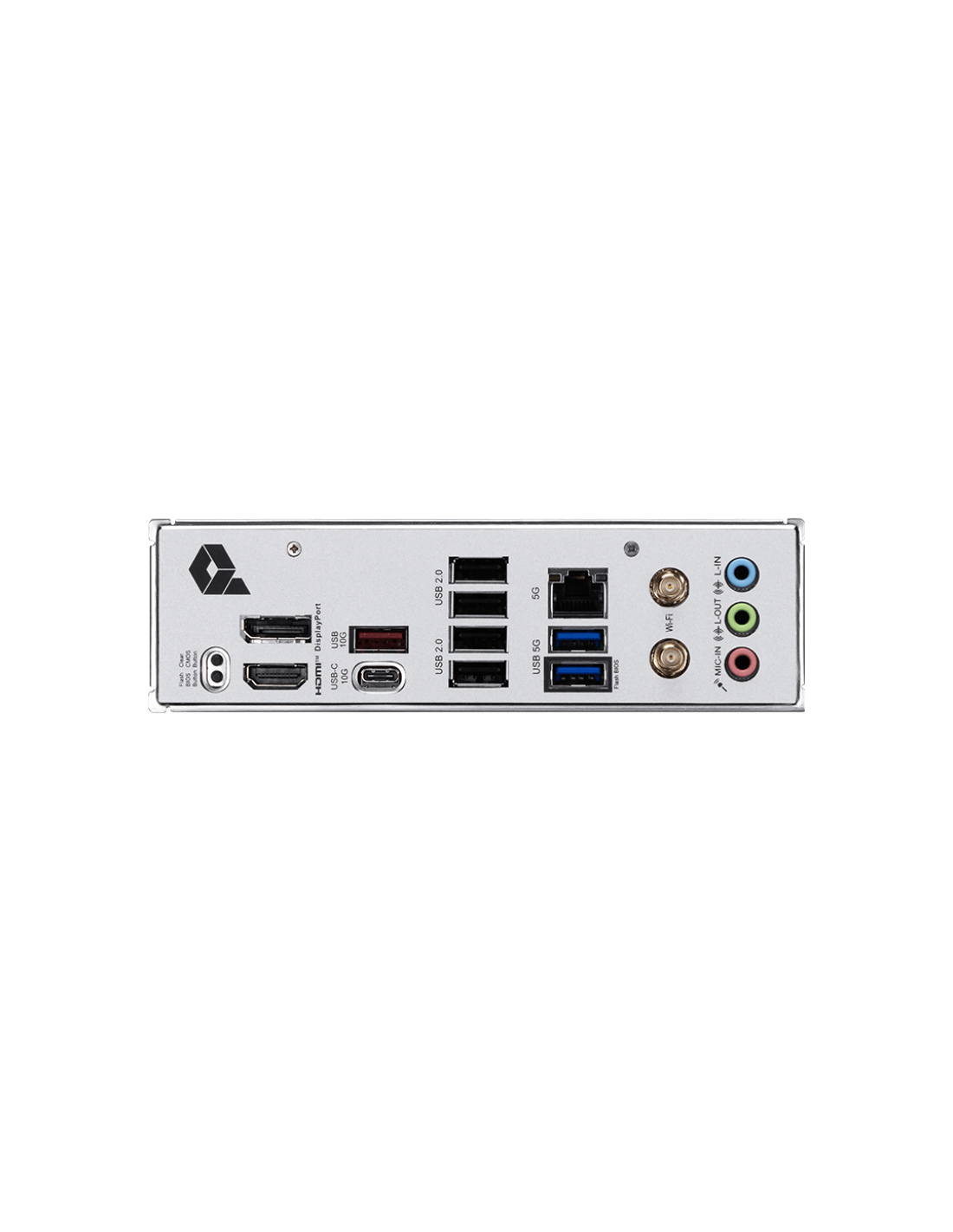 Clear CMOS Button;DisplayPort;USB 10Gbps Type-A;USB 2.0;5G LAN;Wi-Fi / Bluetooth;Audio connectors;Flash BIOS Button;HDMI™;USB 10Gbps Type-C;USB 5Gbps Type-A