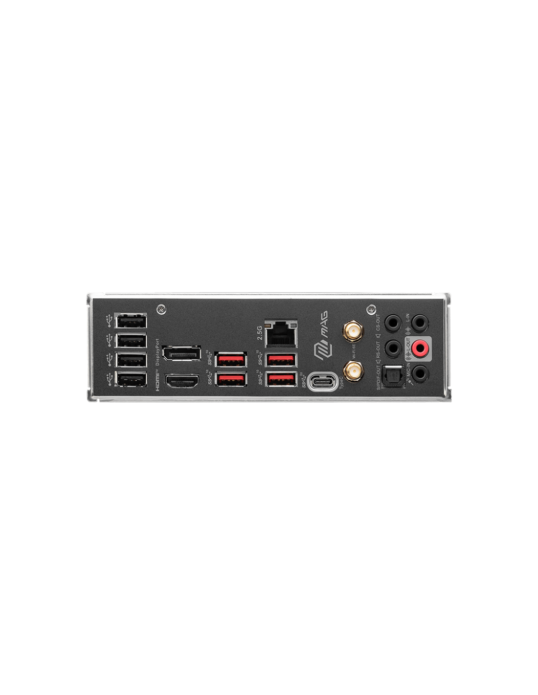 USB 2.0; DisplayPort 1.4; USB 3.2 Gen 2 10Gbps Type-A; 2.5G LAN Port; Wi-Fi / Bluetooth Antenna; HD Audio Connectors; HDMI™ 2.1 Port; USB 3.2 Gen 2x2 20Gbps Type-C; Optical S/PDIF OUT