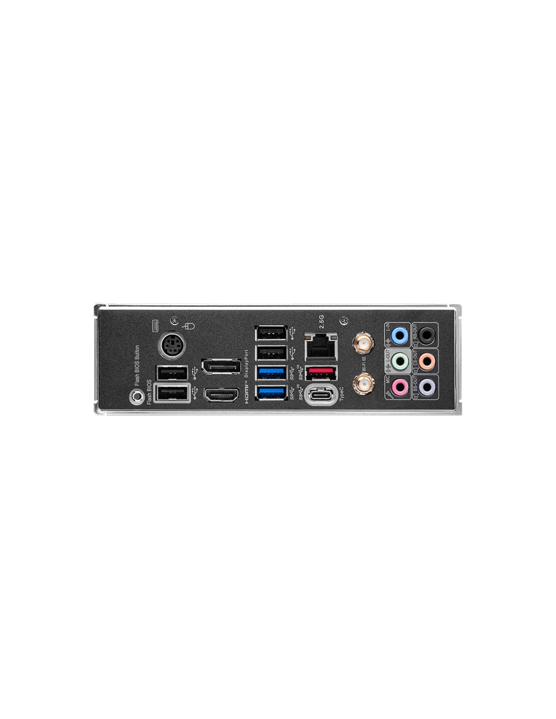 Keyboard / Mouse; DisplayPort; USB 2.0; 2.5G LAN Port; Wi-Fi / Bluetooth Antenna; Audio Connectors; Flash BIOS Button; USB 2.0; HDMI™ 2.1 Port; USB 3.2 Gen 1 5Gbps Type-A; USB 3.2 Gen 2x2 20Gbps Type-C; USB 3.2 Gen 2 10Gbps Type-A