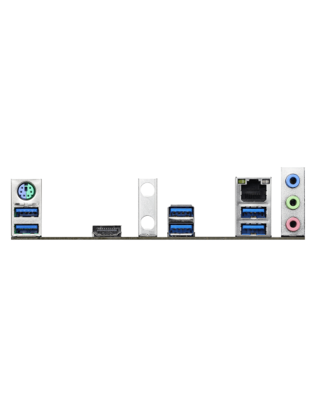 - 2 x Antenna Ports; - 1 x PS/2 Mouse/Keyboard Port; - 1 x HDMI Port; - 6 x USB 3.2 Gen1 Ports (Supports ESD Protection); - 1 x RJ-45 LAN Port with LED (ACT/LINK LED and SPEED LED); - HD Audio Jacks: Line in / Front Speaker / Microphone