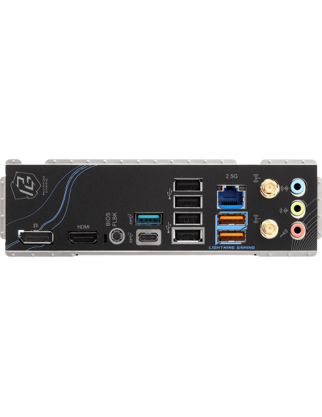 2 x Antenna Ports;1 x HDMI Port;1 x DisplayPort 1.4;1 x USB 3.2 Gen2 Type-C Port (10 Gb/s);1 x USB 3.2 Gen2 Type-A Port (10 Gb/s);2 x USB 3.2 Gen1 Ports;4 x USB 2.0 Ports;1 x RJ-45 LAN Port;1 x BIOS Flashback Button;HD Audio Jacks: Line in / Front Speaker