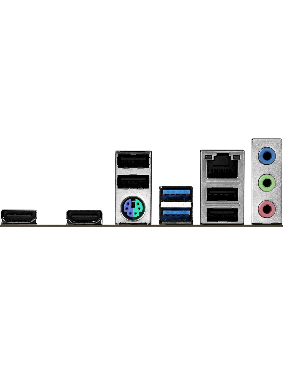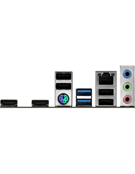 - 1 x PS/2 Mouse/Keyboard Port; - 2 x HDMI Ports; - 2 x USB 3.2 Gen1 Type-A Ports; - 4 x USB 2.0 Ports; - 1 x RJ-45 LAN Port; - HD Audio Jacks: Line in / Front Speaker / Microphone