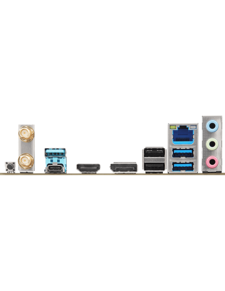 2 x Antenna Ports;1 x HDMI Port;1 x DisplayPort 1.4;1 x USB 3.2 Gen2x2 Type-C Port (20 Gb/s);3 x USB 3.2 Gen1 Ports;2 x USB 2.0 Ports;1 x RJ-45 LAN Port;1 x BIOS Flashback Button;HD Audio Jacks: Line in / Front Speaker / Microphone