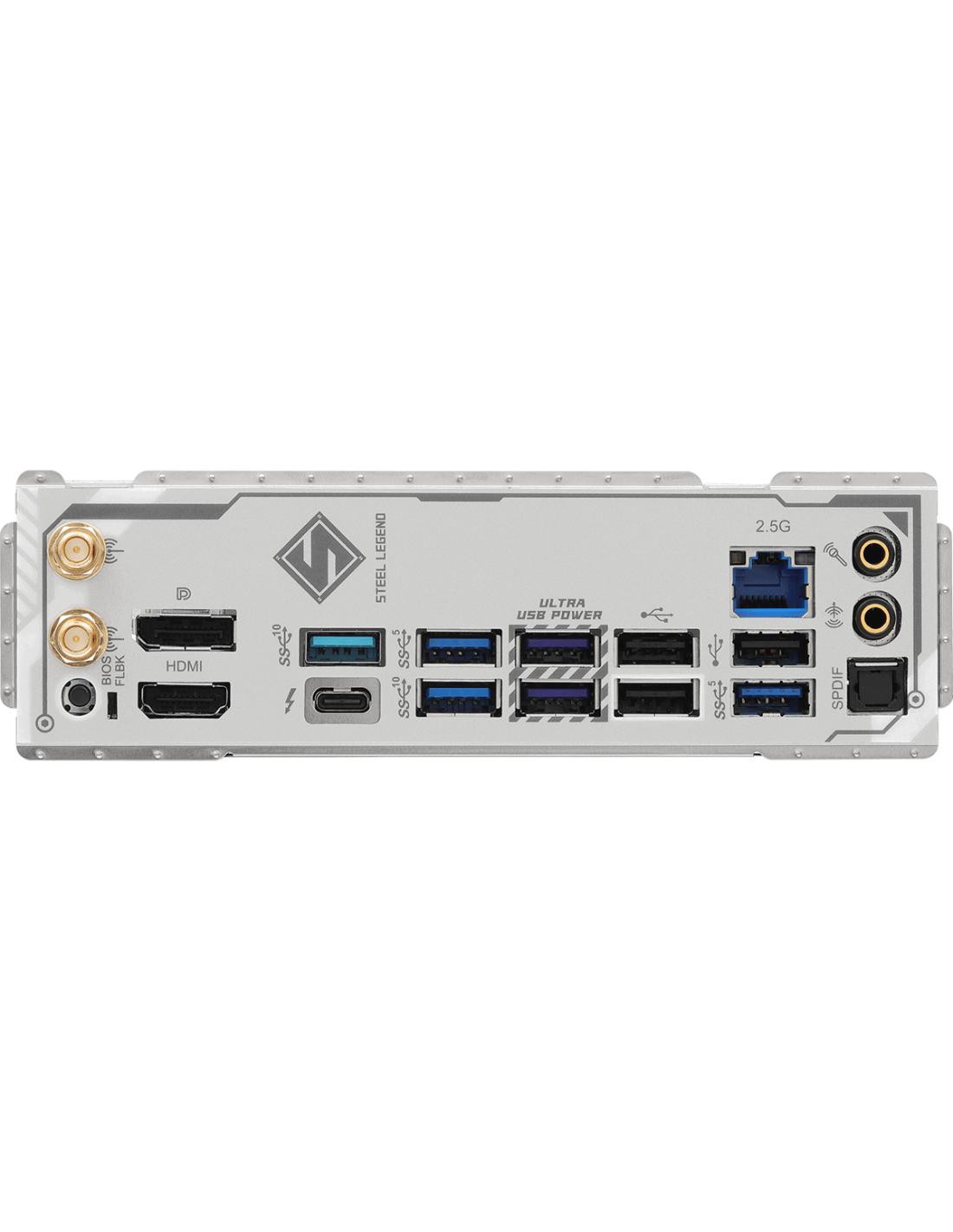 2 x Antenna Ports;1 x HDMI Port;1 x DisplayPort 1.4;1 x Optical SPDIF Out Port;1 x Thunderbolt™ 4 Type-C Port (40 Gb/s for USB4 protocol; 40Gb/s for Thunderbolt™ protocol);2 x USB 3.2 Gen2 Type-A Ports (10 Gb/s);4 x USB 3.2 Gen1 Ports;3 x USB 2.0 Ports;1