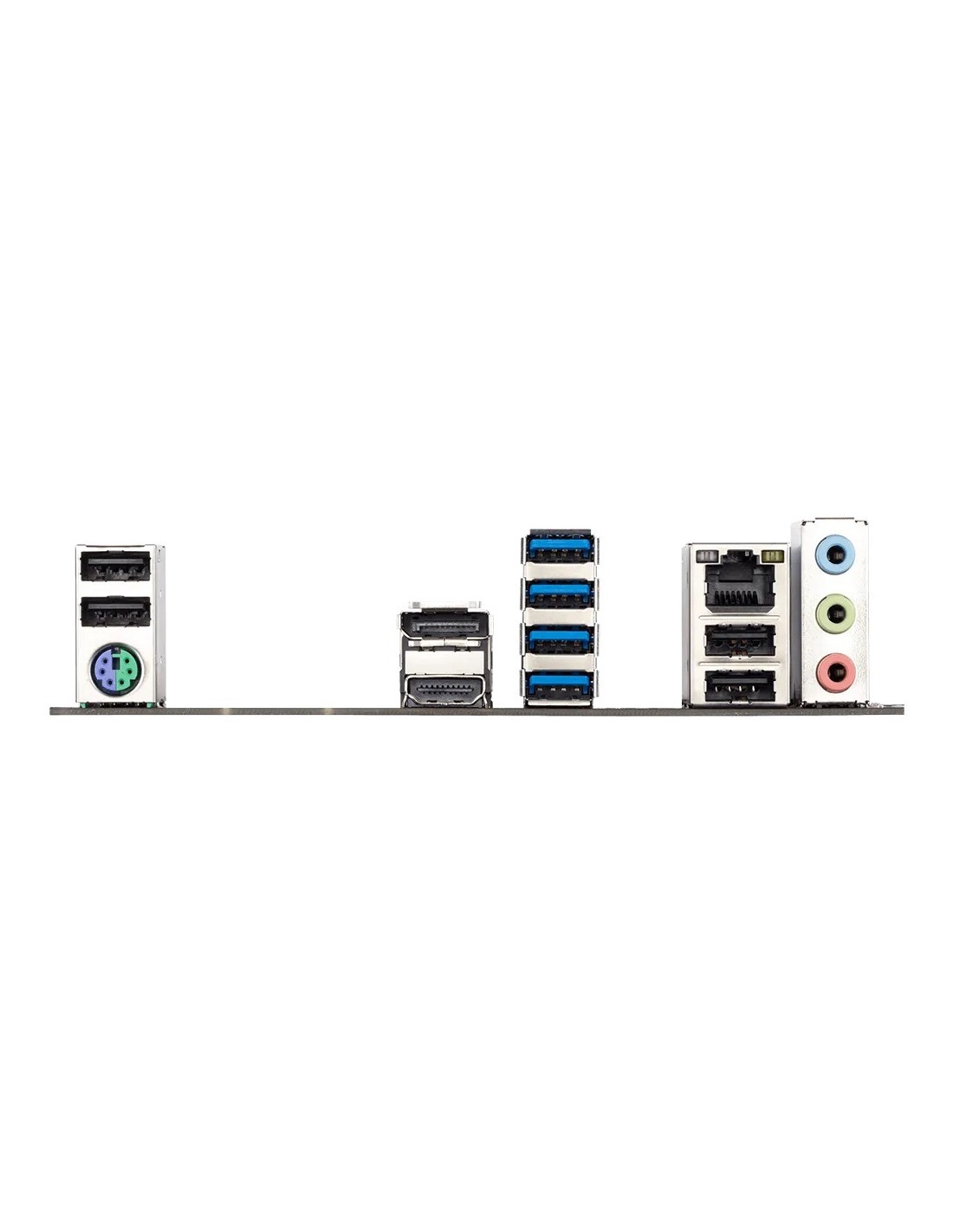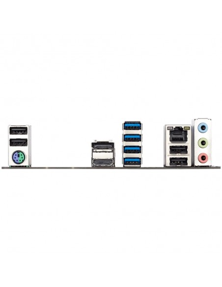 1 x PS/2 keyboard/mouse port; 1 x DisplayPort; 1 x HDMI port; 4 x USB 3.2 Gen 1 ports; 4 x USB 2.0/1.1 ports; 1 x RJ-45 port; 3 x audio jacks