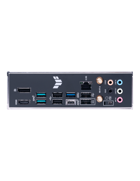 Back Panel I/O Ports; 1 x USB 3.2 Gen 2x2 port (1 x USB Type-C®); 2 x USB 3.2 Gen 2 ports (2 x Type-A); 1 x USB 3.2 Gen 1 port (1 x Type-A); 4 x USB 2.0 ports (4 x Type-A); 1 x DisplayPort; 1 x HDMI®port; 1 x Wi-Fi Modul; 1 x Realtek 2.5Gb Ethernet port;