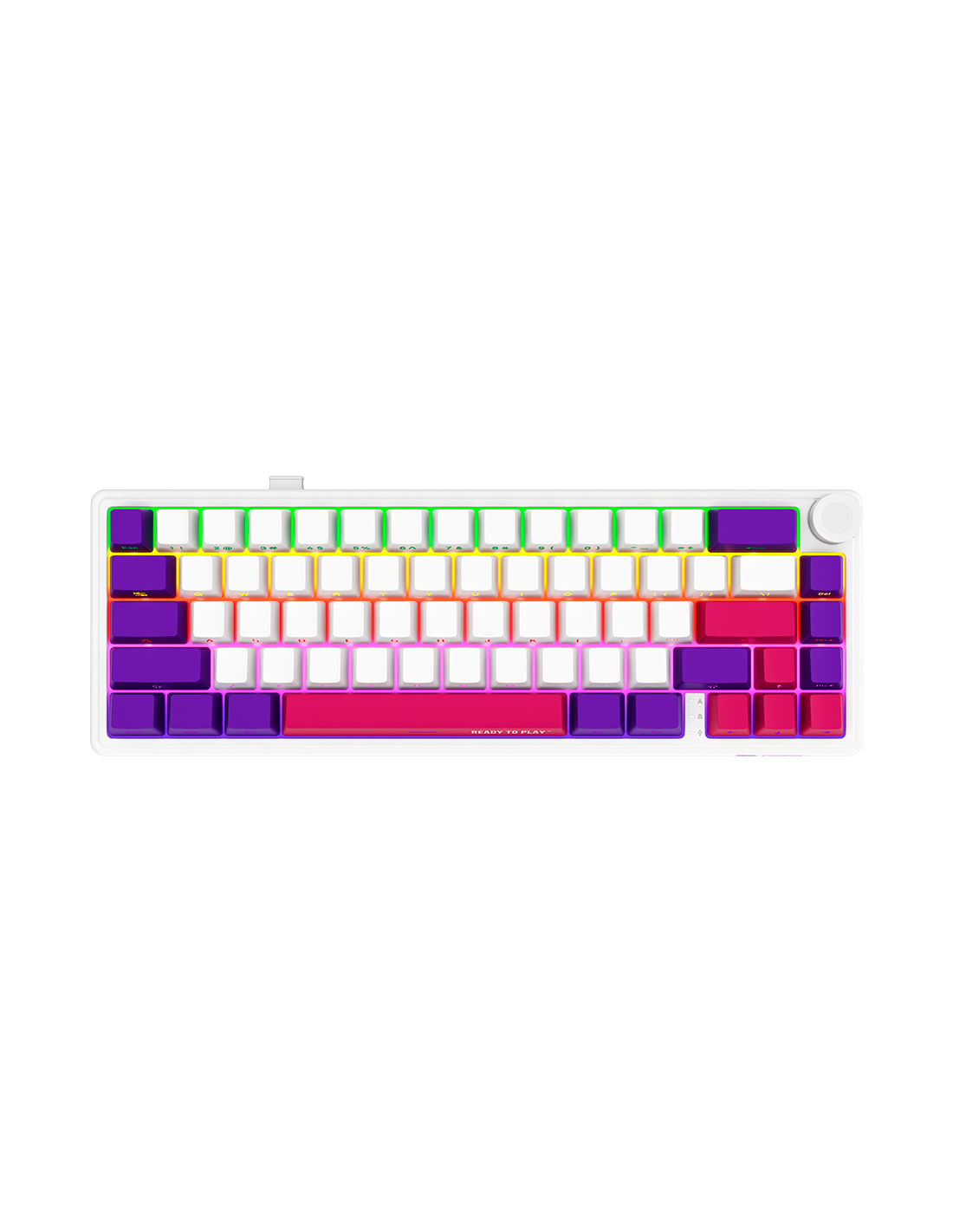 NKRO поддръжка Превключватели с възможност за гореща смяна Дизайн с уплътнение RGB подсветка 16 режима на осветление Мултимедиен бутон Многоцветни клавиши Клавиши за индикатори за ниво на зареждане (1-0)
