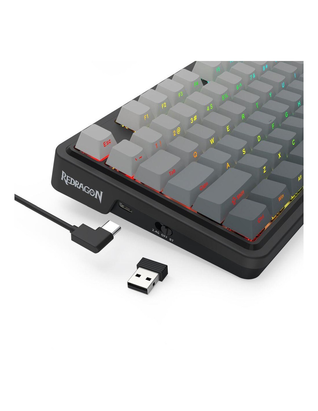 Bluetooth и безжична механична геймърска клавиатура Redragon Ucal Pro K673SP-RGB-PRO, RGB осветление - черна със сив градиент _VI