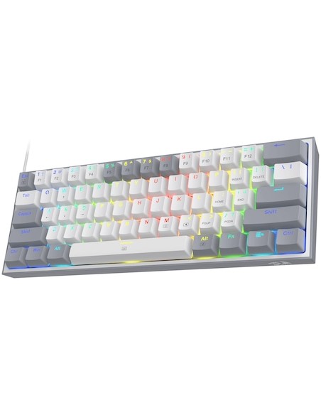RGB Кабелна/Bluetooth 5/2.4GHz механична геймърска клавиатура Redragon K616-RGB-WG_RD Fizz PRO Red Switch - бяло/сиво