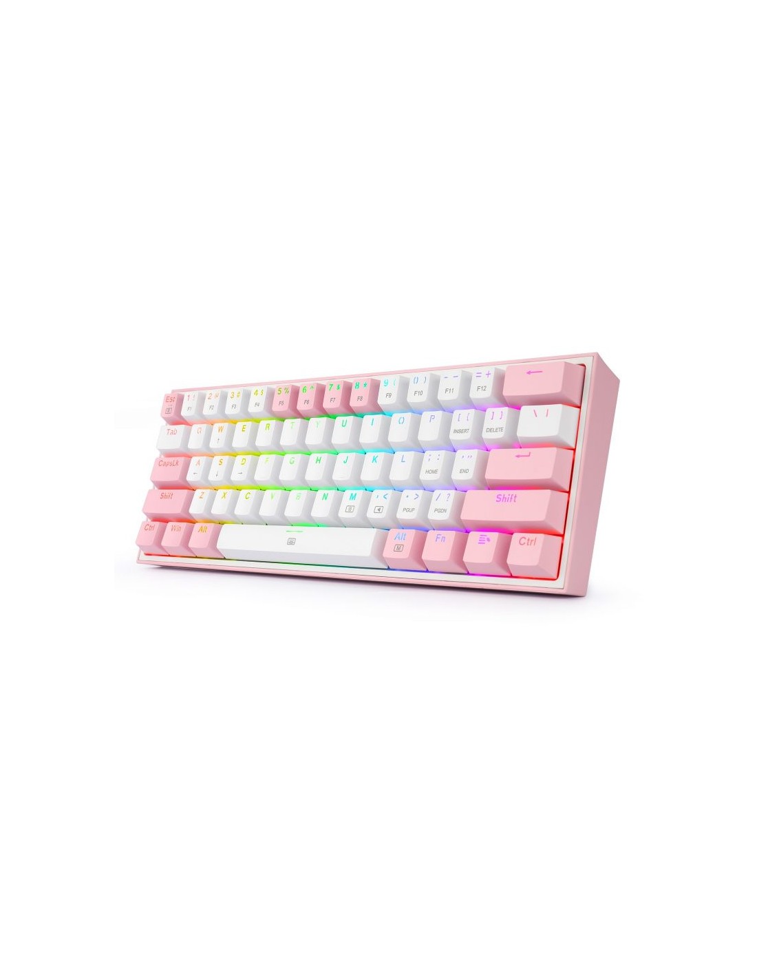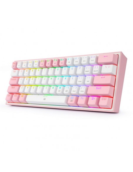 Кабелна/Bluetooth 5/2.4GHz RGB механична геймърска клавиатура Redragon Fizz Pro K616-RGB-WP_RD - бяло/розово