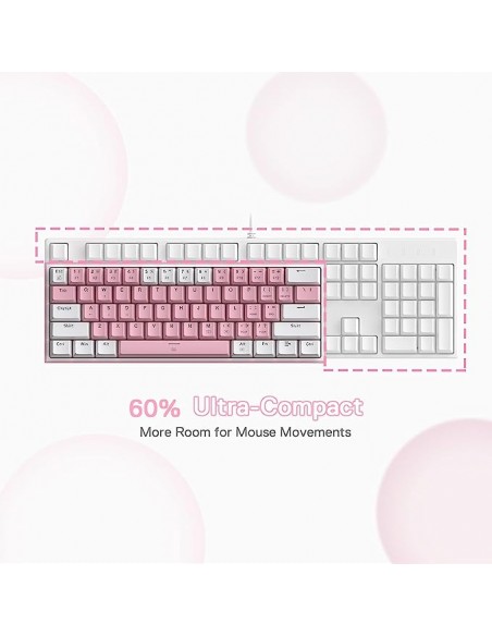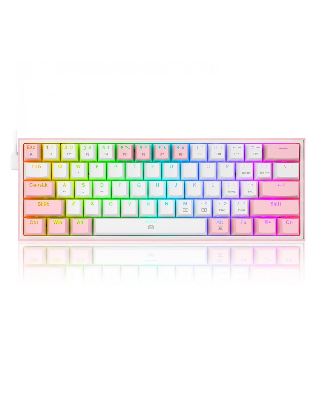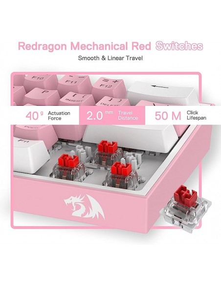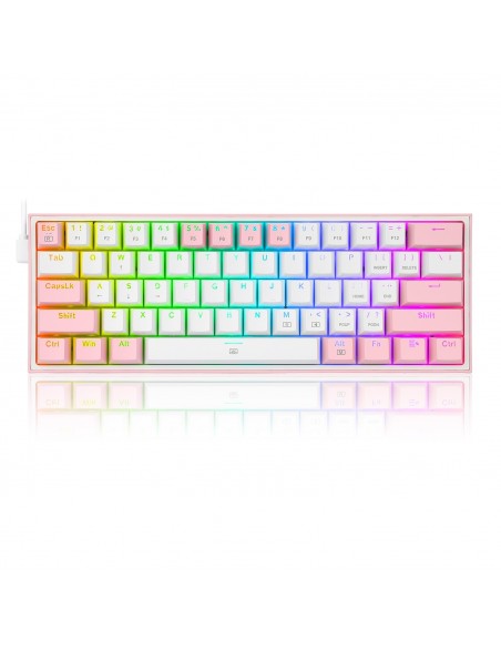 Кабелна/Bluetooth 5/2.4GHz RGB механична геймърска клавиатура Redragon Fizz Pro K616-RGB-WP_RD - бяло/розово