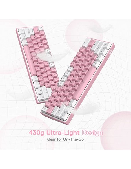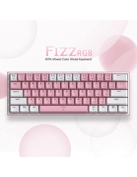 Кабелна/Bluetooth 5/2.4GHz RGB механична геймърска клавиатура Redragon Fizz Pro K616-RGB-WP_RD - бяло/розово _VI