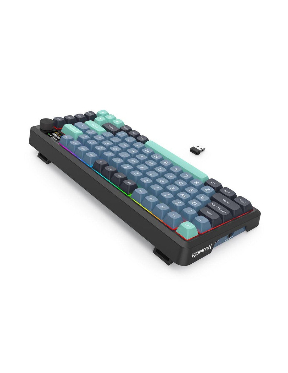 Bluetooth и безжична механична геймърска клавиатура Redragon Behemoth Pro K724GBG-RGB-PRO с RGB осветление - черна със зелено