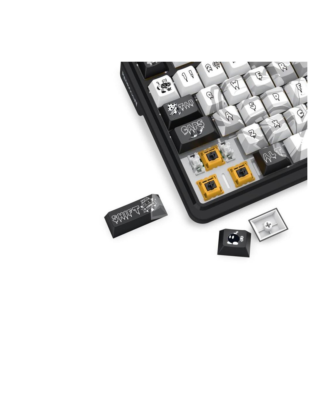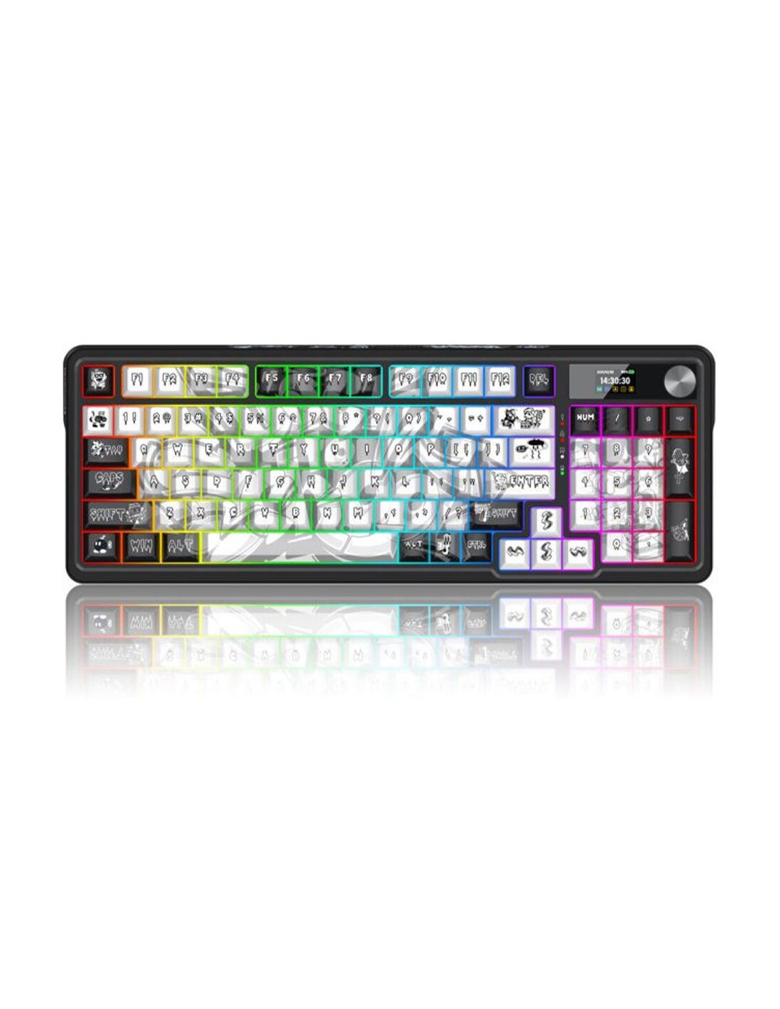 Bluetooth и безжична механична геймърска клавиатура Redragon Artemis Pro Anime K719GF-RGB-PRO RGB осветление - черно с бяло