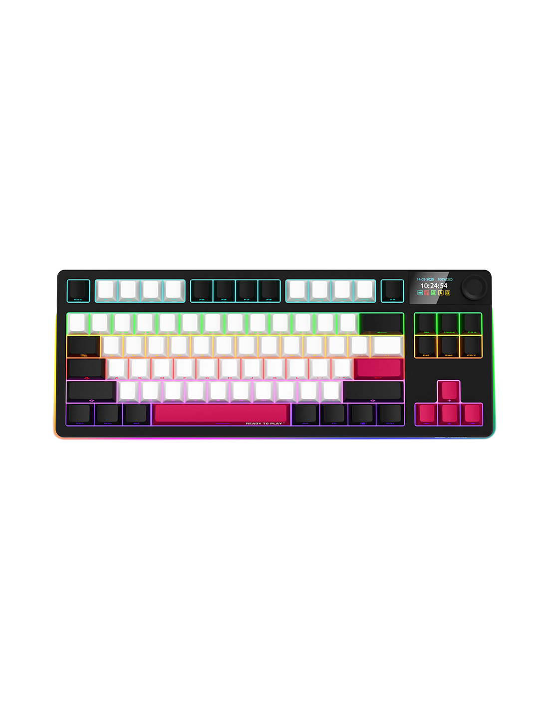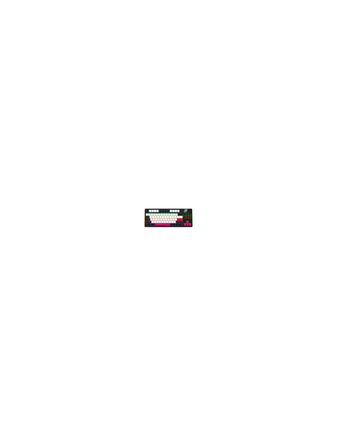 RGB подсветка NKRO поддръжка Превключватели с възможност за гореща смяна Дизайн с уплътнение Многоцветни клавиши 19 режима на осветление Конфигурируем многоцветен RGB дисплей Мултимедийно интелигентно копче