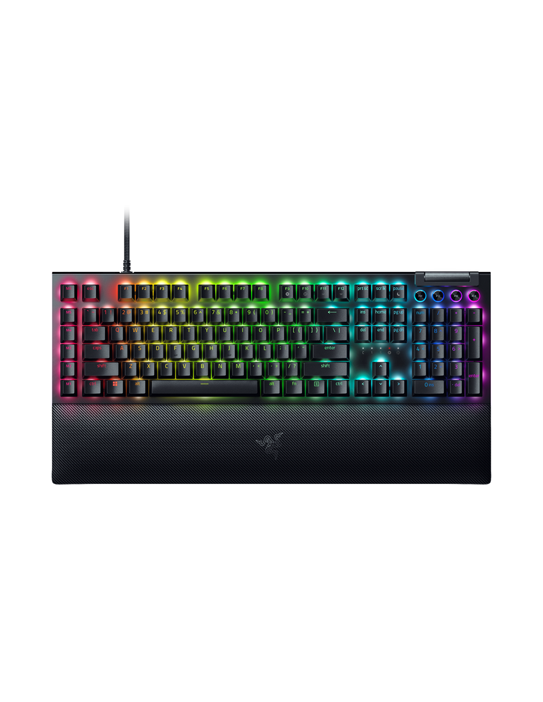 Razer BlackWidow V4 Pro Mechanical Gaming Keyboard, US Layout, Green Switch, Razer Chroma™ RGB, Command Dial, 8 Macro Keys, Lubricated Stabilizers, Media Keys, Magnetic Wrist Rest, USB Passthrough, Up to 8000 Hz Polling Rate, Detachable Type C Cable_AS