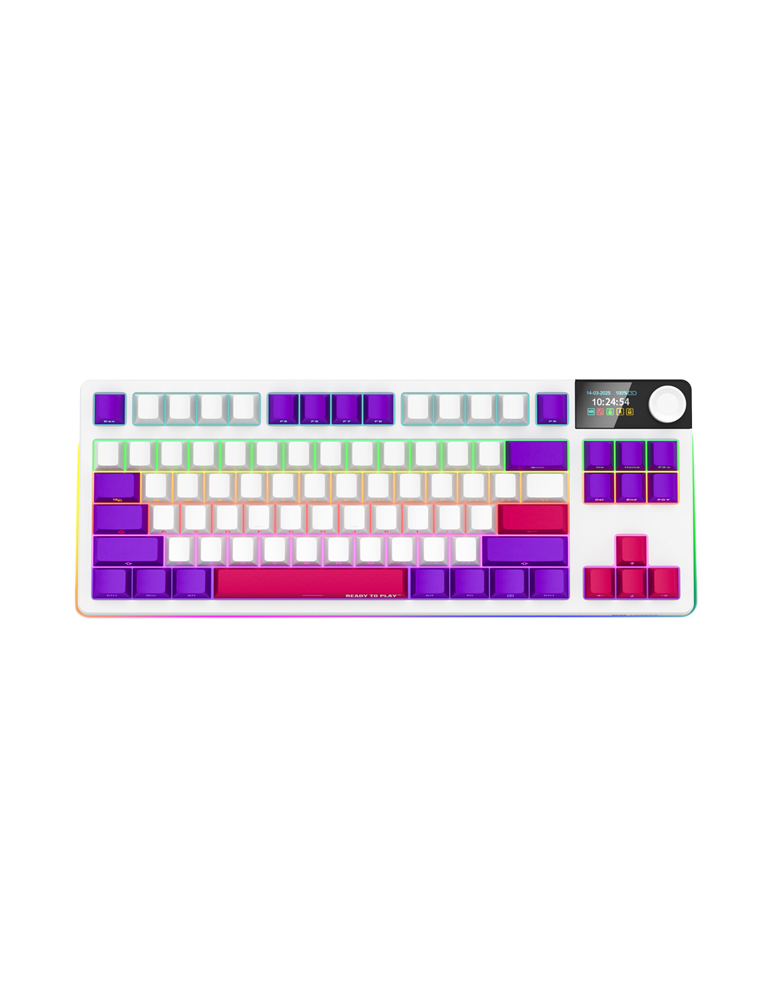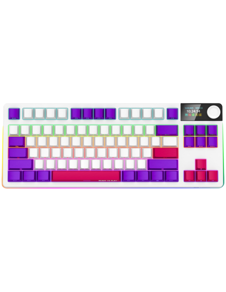 RGB подсветка NKRO поддръжка Превключватели с възможност за гореща смяна Дизайн с уплътнение Многоцветни клавиши 19 режима на осветление Конфигурируем многоцветен RGB дисплей Мултимедийно интелигентно копче