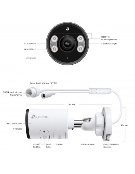 5MP външна пълноцветна Bullet мрежова камера TP-Link VIGI InSight S355(6mm)