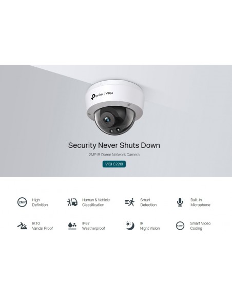 2MP IR куполна мрежова камера TP-Link VIGI C220I(4mm)