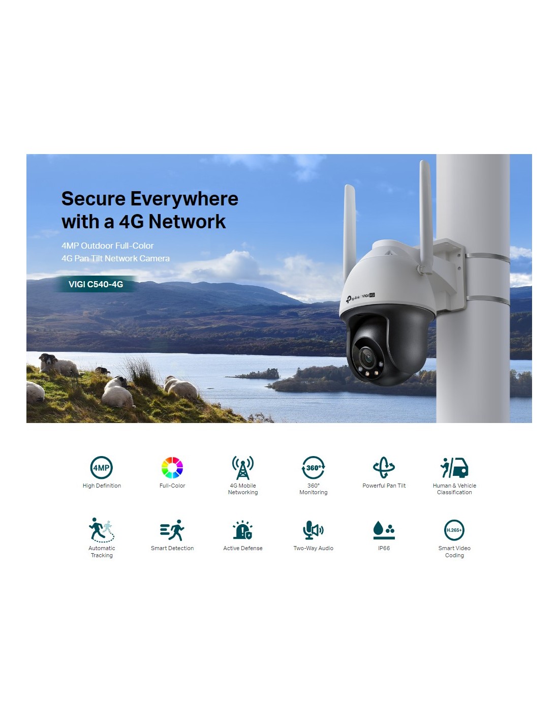 4MP външна пълноцветна панорамна и наклонена мрежова камера TP-Link VIGI C540-4G