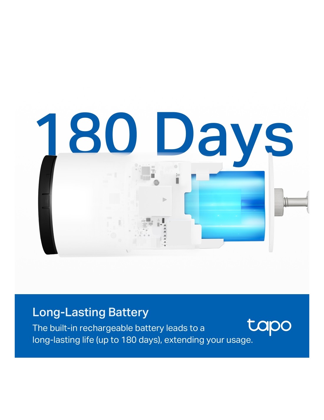 Built-in Rechargeable Lithium-ion Battery Optional Solar Panel: Tapo A201 (Sold separately)
