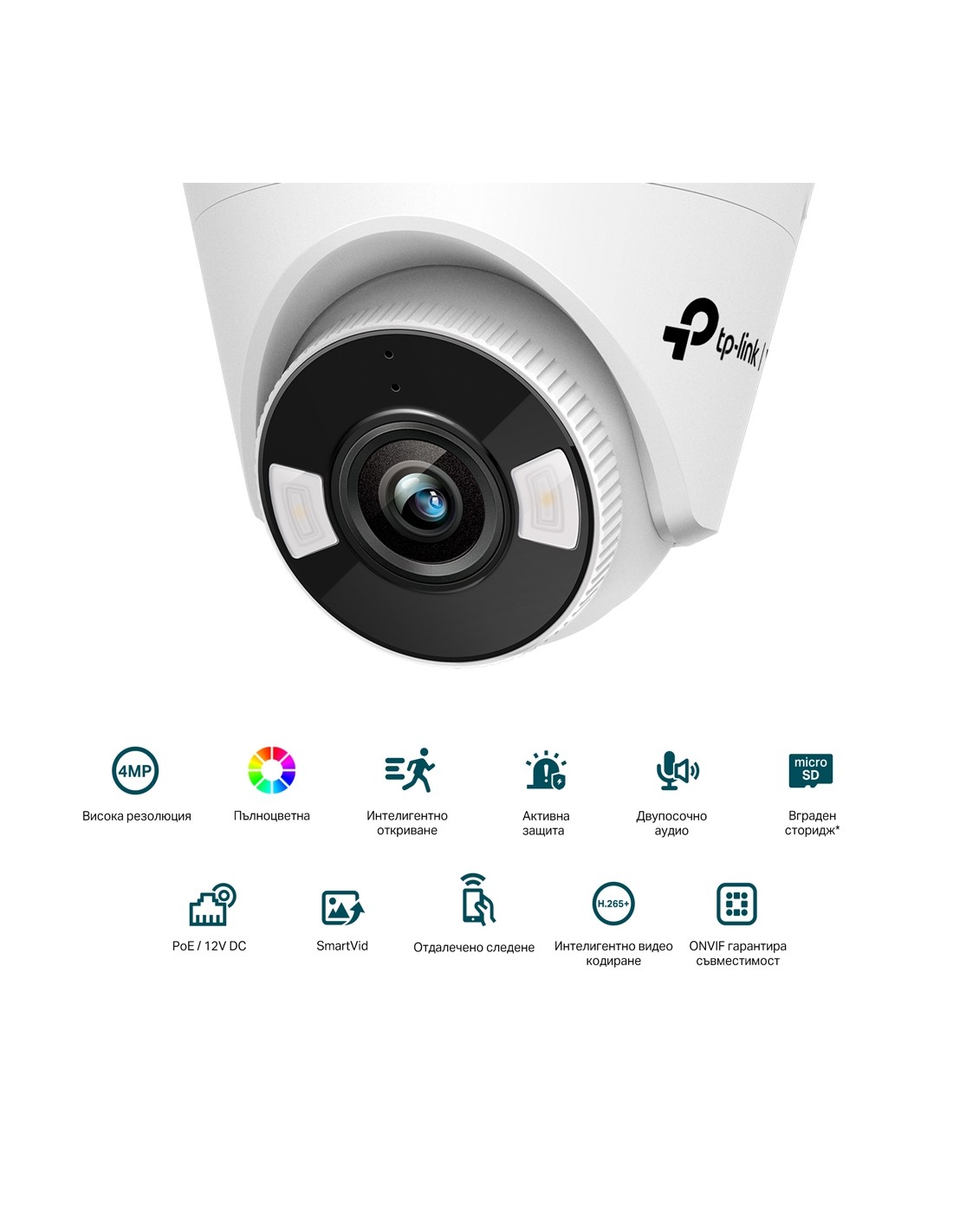 4MP пълноцветна куполна мрежова камера TP-Link 4MP Full-Color Turret Network Camera VIGI C440(2.8mm)