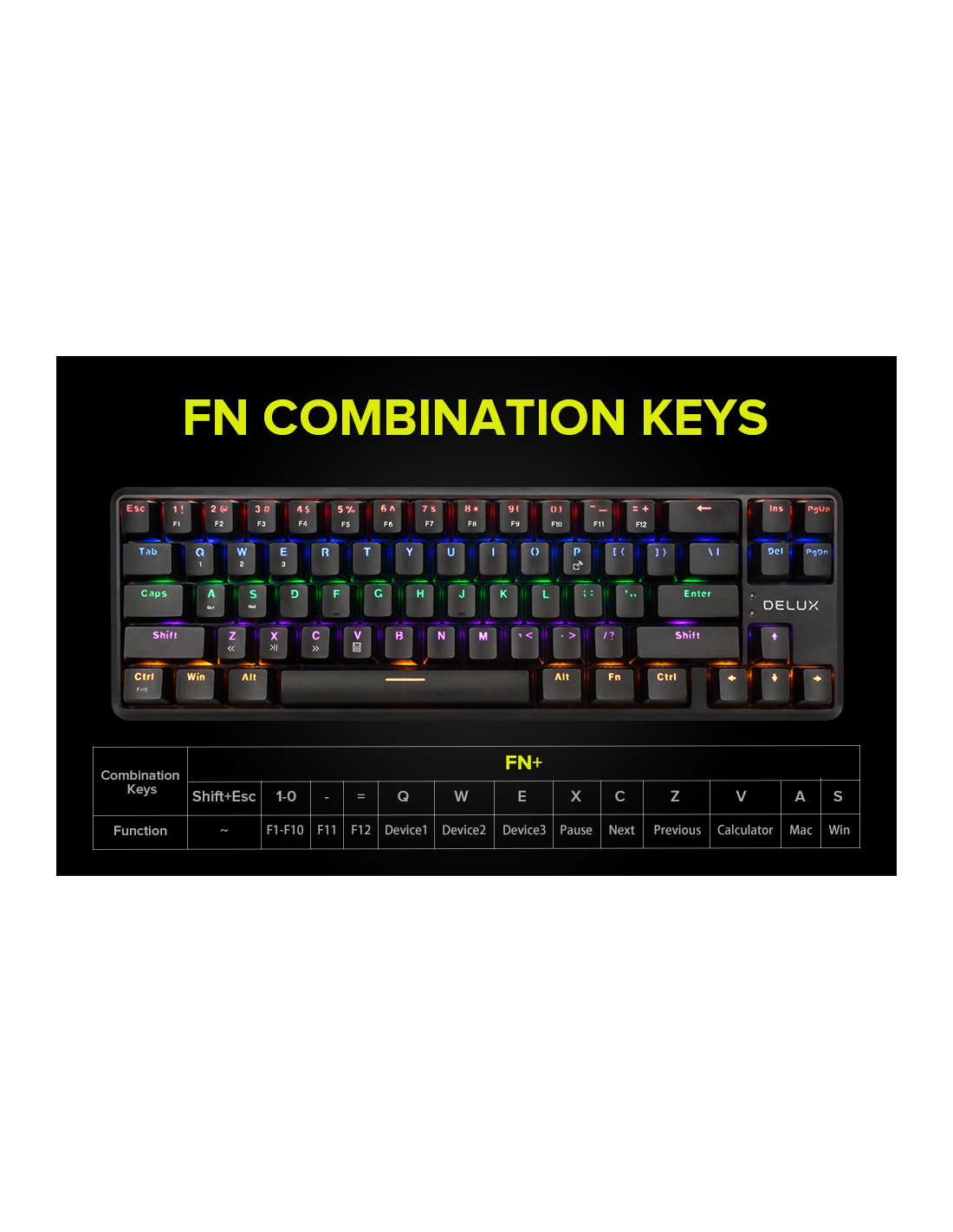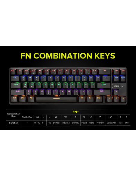 Клавиатура Delux KM32 механична геймърска USB Type-C/Bluetooth v5.0 Rainbow RGB LED