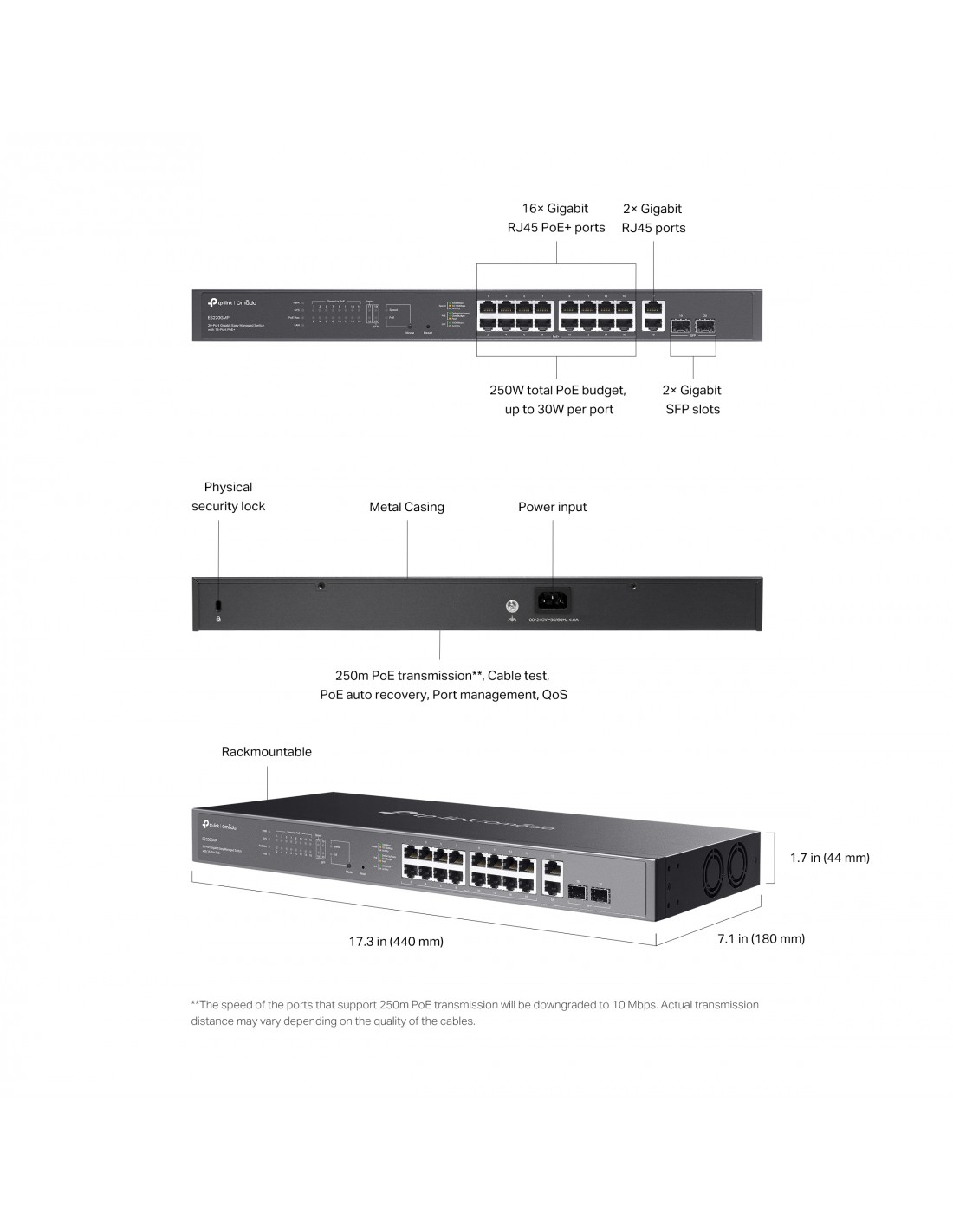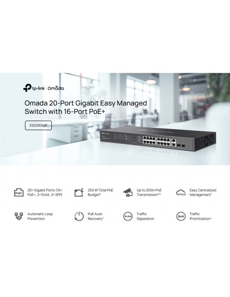 20-портов комутатор TP-Link Omada ES220GMP Gigabit Easy Managed Switch с 16 PoE+ порта _VI