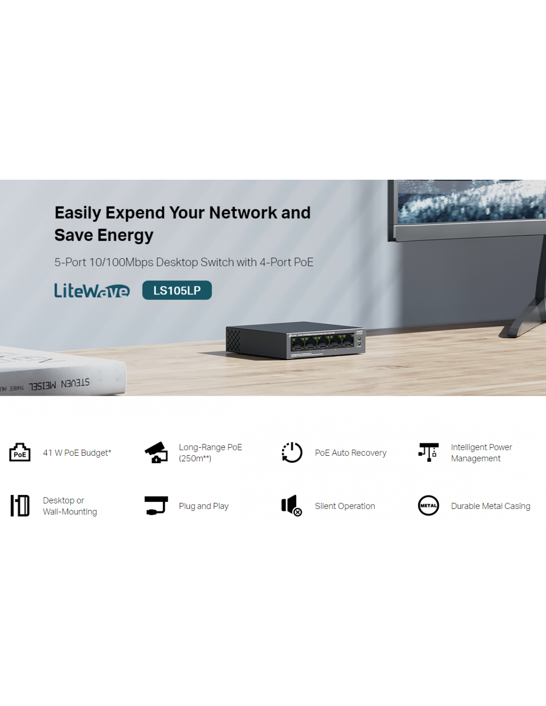 Комутатор TP-Link LS105LP 5-портов 10/100 Mbps _VI