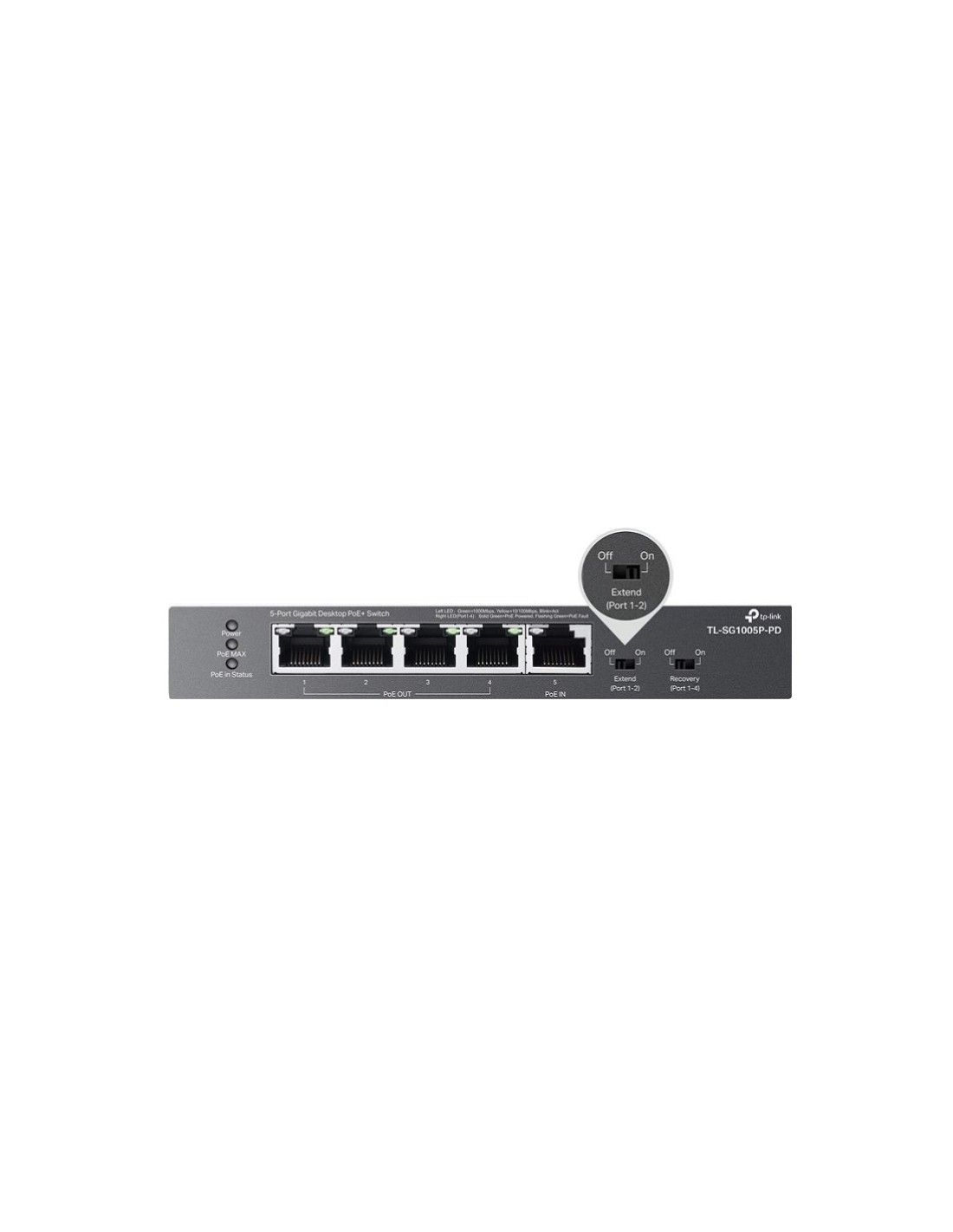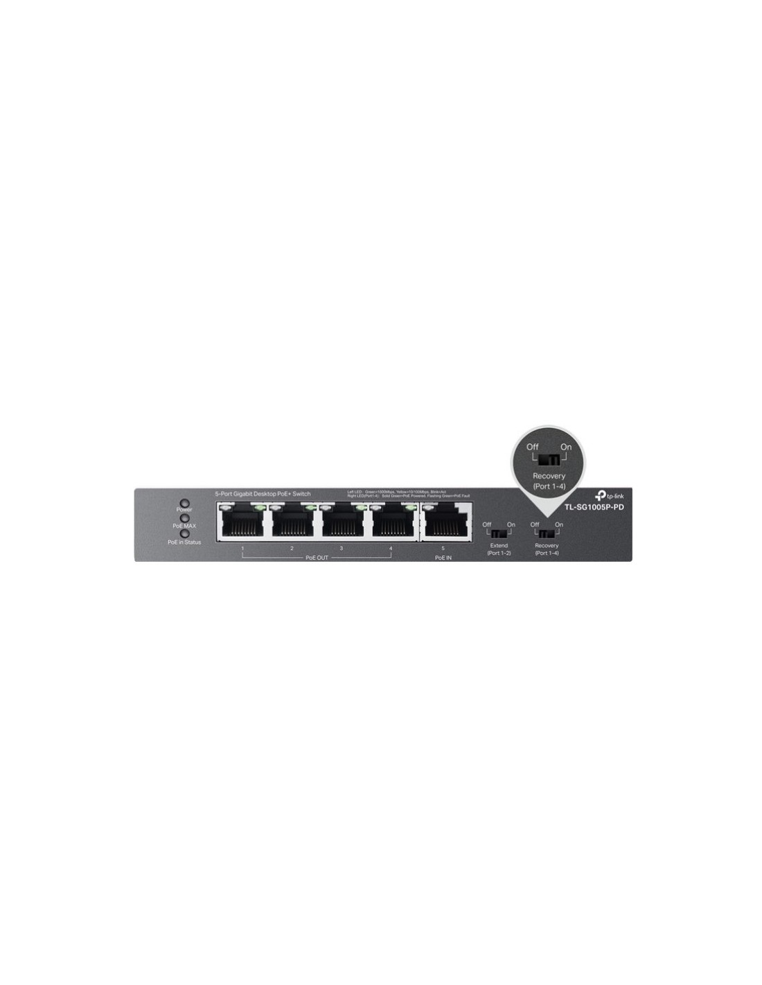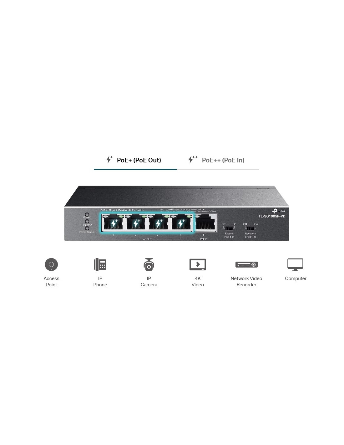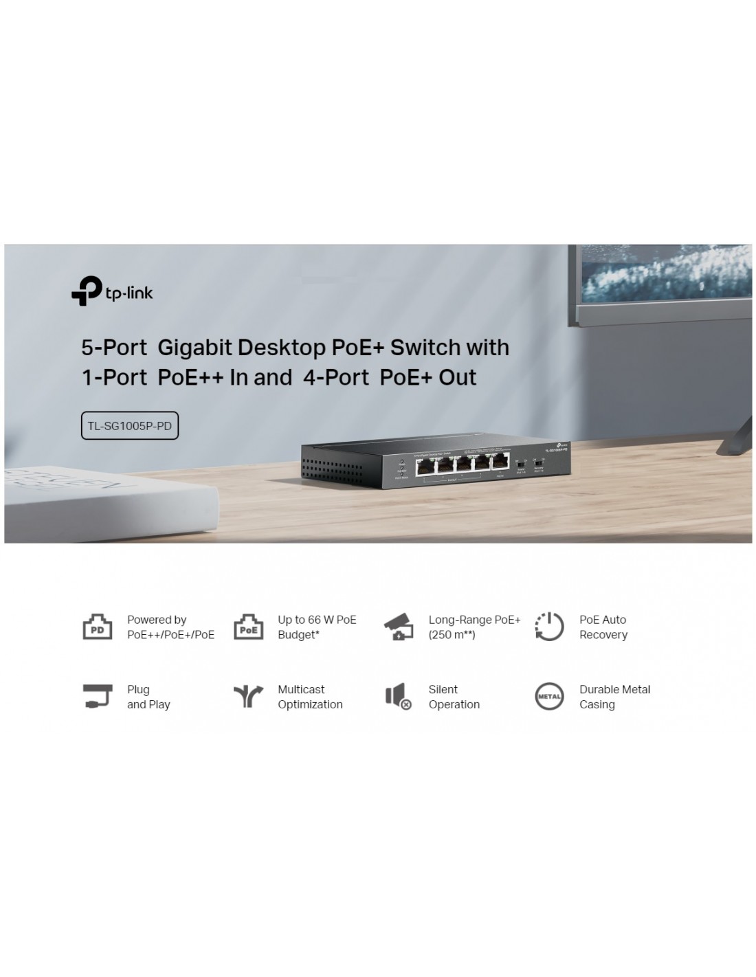 5-портов гигабитов настолен PoE+ комутатор с 1-портов PoE++ вход и 4-портов PoE+изход TP-Link TL-SG1005P-PD _VI
