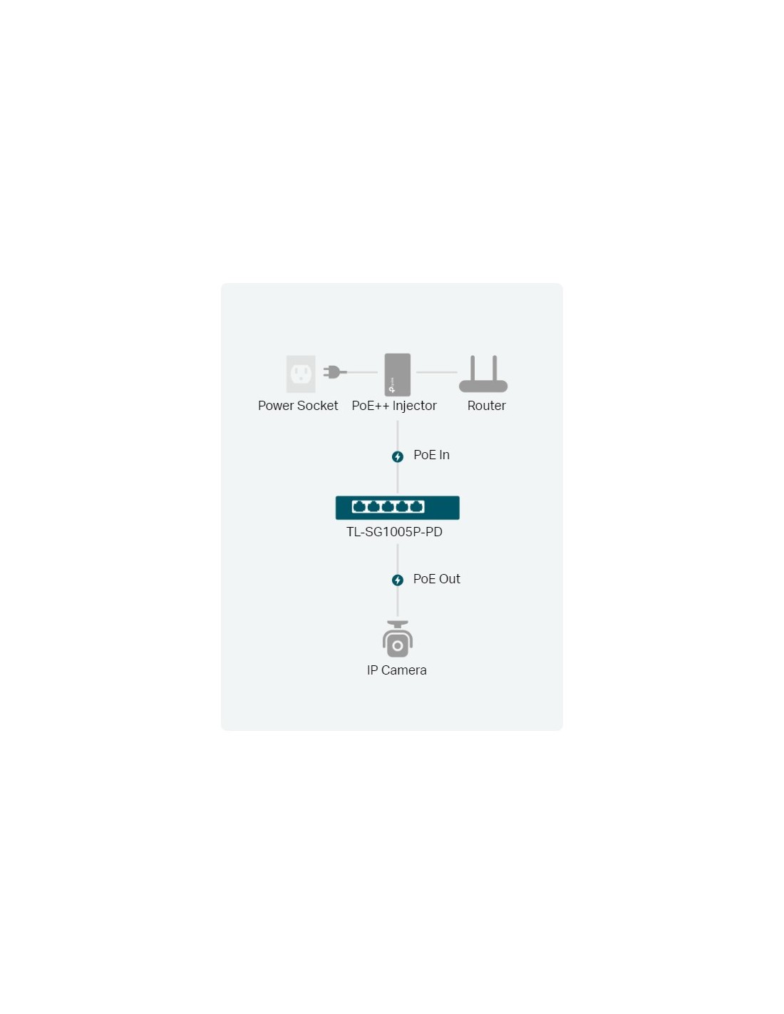 1× 10/100/1000 Mbps RJ45 PoE In Ports (compliance with 802.3af/at/bt Type3/bt Type4)
