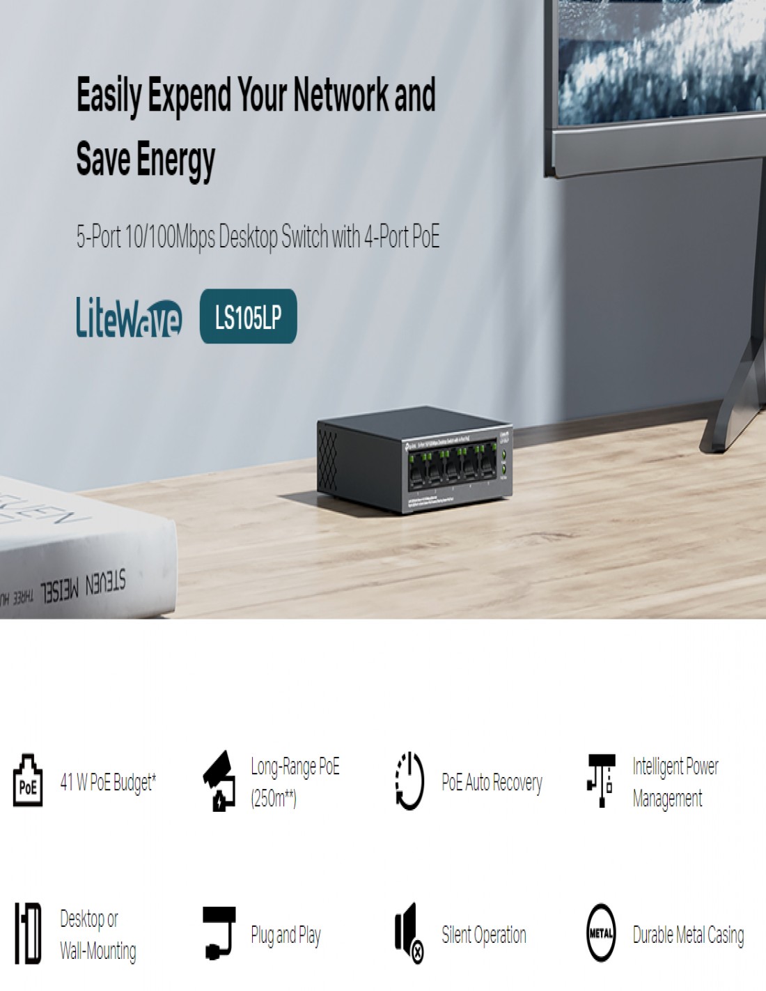 Комутатор TP-Link LS105LP 5-портов 10/100 Mbps _VI