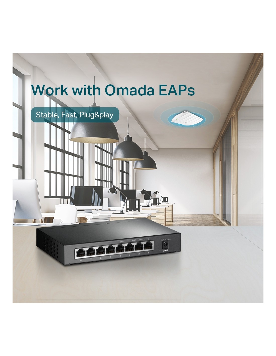 8-Port Gigabit Desktop PoE Switch, 8 Gigabit RJ45 ports including 4 PoE ports, 53W PoE Power supply, steel case, 24 месеца
