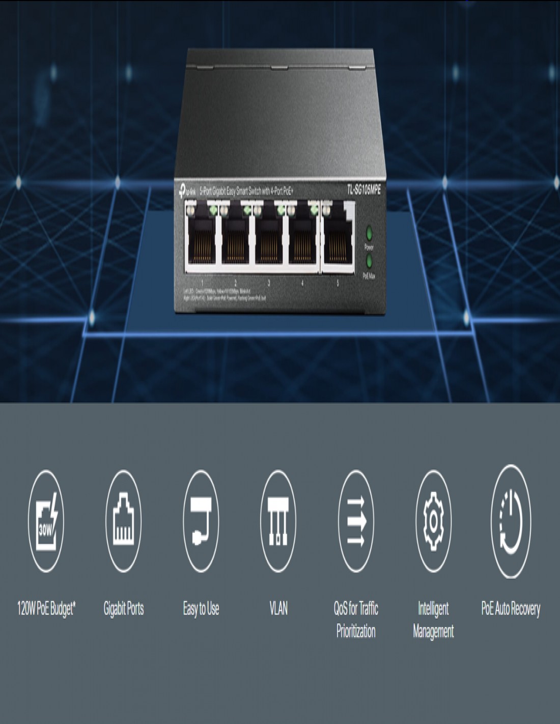 Комутатор TL-SG105MPE 5-портов Gigabit Easy Smart Switch с 4 порта PoE+ _VI