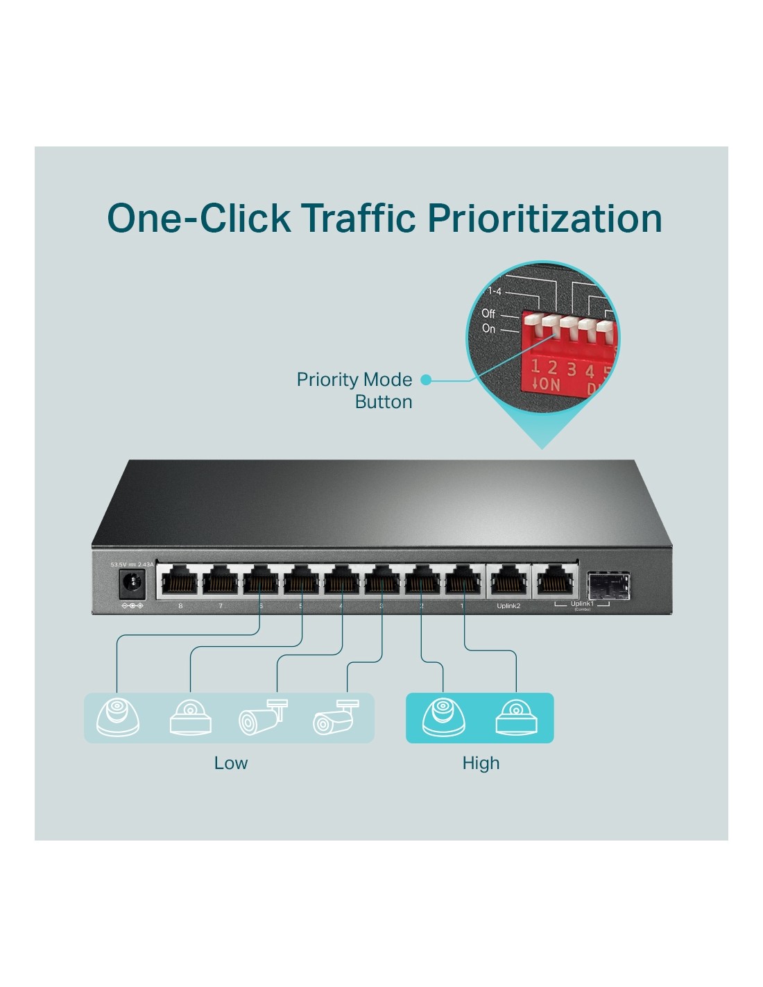 10-портов настолен гигабитен комутатор TP-Link TL-SG1210MP с 8-PoE+ порта и gigabit combo SFP/RJ45 порт_VI