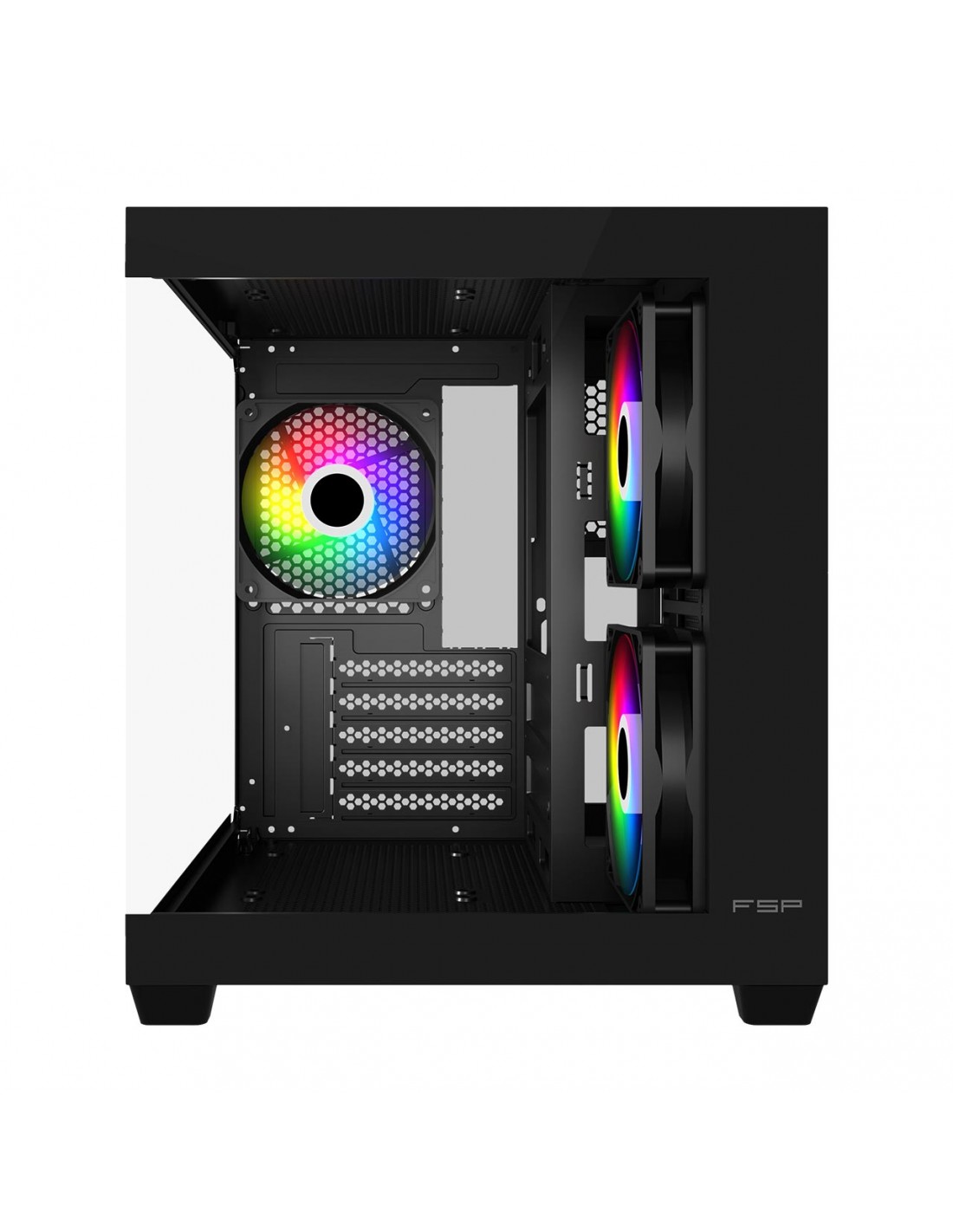 Fan Including(Pre-installed): Side: 120mm reverse ARGB x 2 control by Fan, Rear: 120mm ARGB x 1;Fan&Water Cooler Support: Side: 120 x 2 or 240mm Radiator, Top: 120mm x 2, Bottom: 120mm x 2 or 240mm Radiator, Rear: 120mm x 1;Max Radiator Support: 240mm