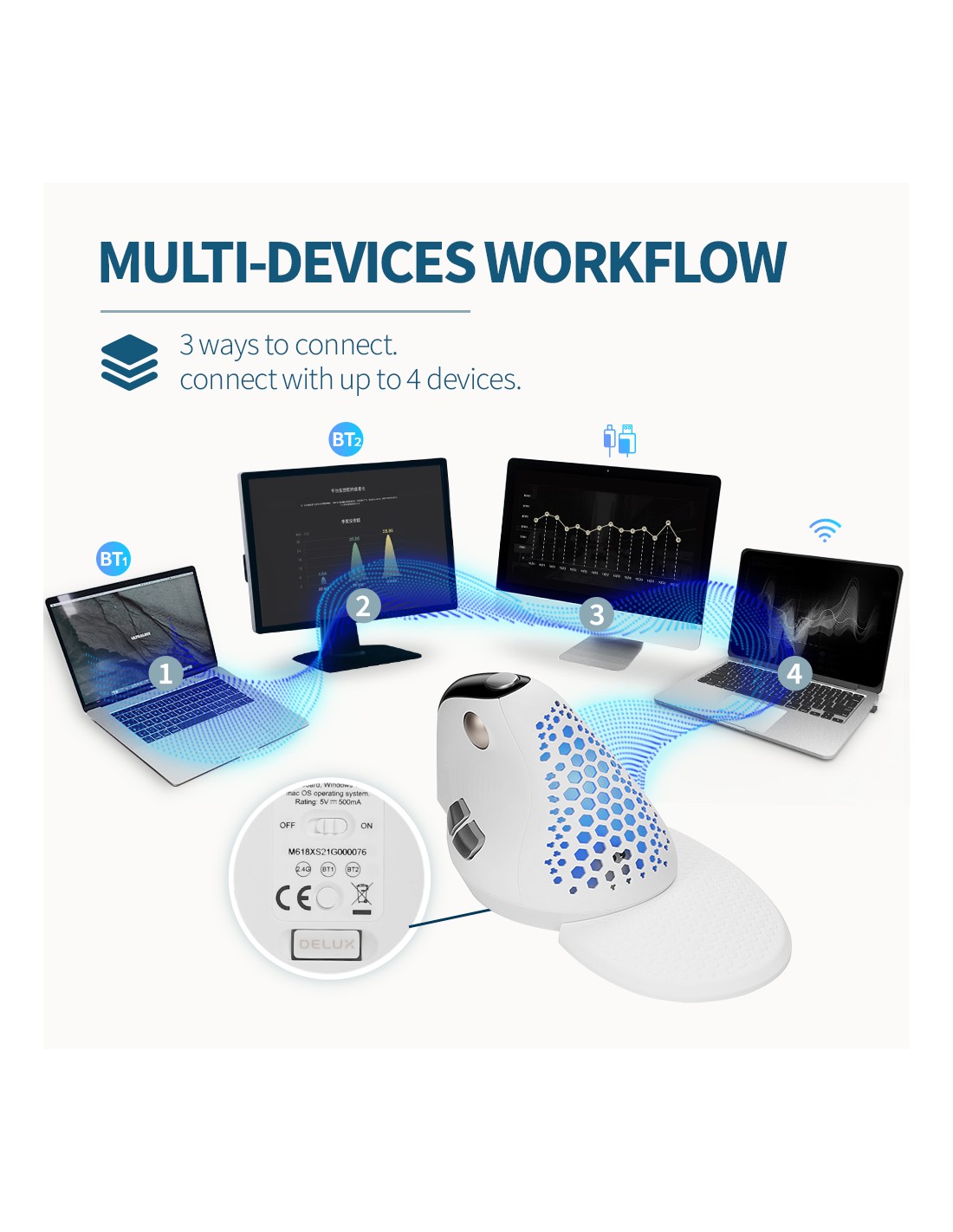 Mишка DELUX M618XSD вертикална USB/безжична/Bluetooth