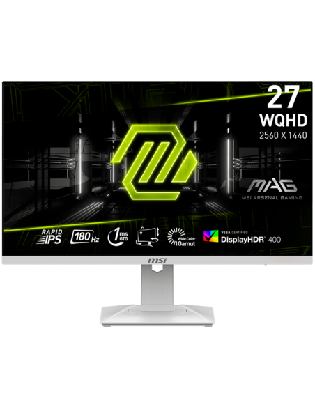 MSI MAG 274QRFW Gaming Monitor, 27" 180Hz, WQHD (2560x1440) 16:9, Rapid IPS Anti-glare, 1ms, 400nits, 1000:1, 178/178, AMD FreeSync, DisplayHDR 400, Adjustable Stand, 1x DP, 2x HDMI, 1x Headphone out, White, 3Y Warranty_AS