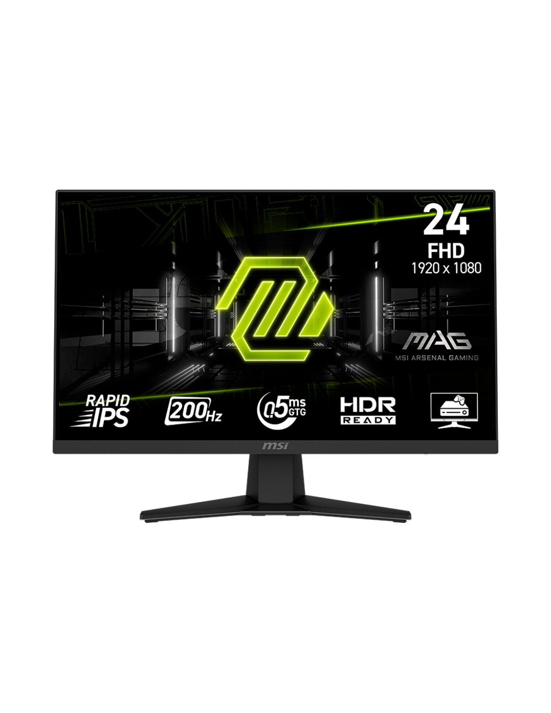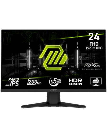 MSI MAG 244F Gaming Monitor, 23.8" 200Hz, FHD (1920x1080) 16:9, Rapid IPS Anti-glare, 0.5ms, 300nits, 1000:1, 178/178, AMD FreeSync Premium, Tilt, 1x DP, 1x HDMI, 1x Headphone-out, 3Y Warranty_AS