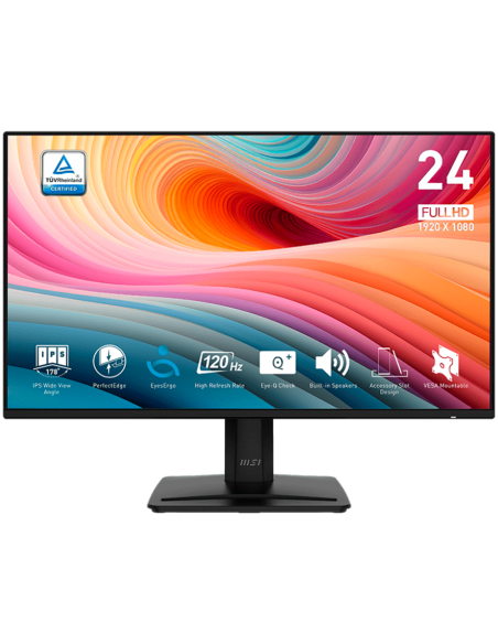 MSI PRO MP242A E2 Professional Business Monitor, 23.8" 120Hz, FHD (1920x1080) 16:9, IPS Anti-glare, 1ms/4ms, 300nits, 1500:1, 178/178, Adaptive-Sync, Tilt, Speakers, 1x D-Sub(VGA), 1x HDMI, 1x DP, 1x Headphone-out, 3Y Warranty_AS